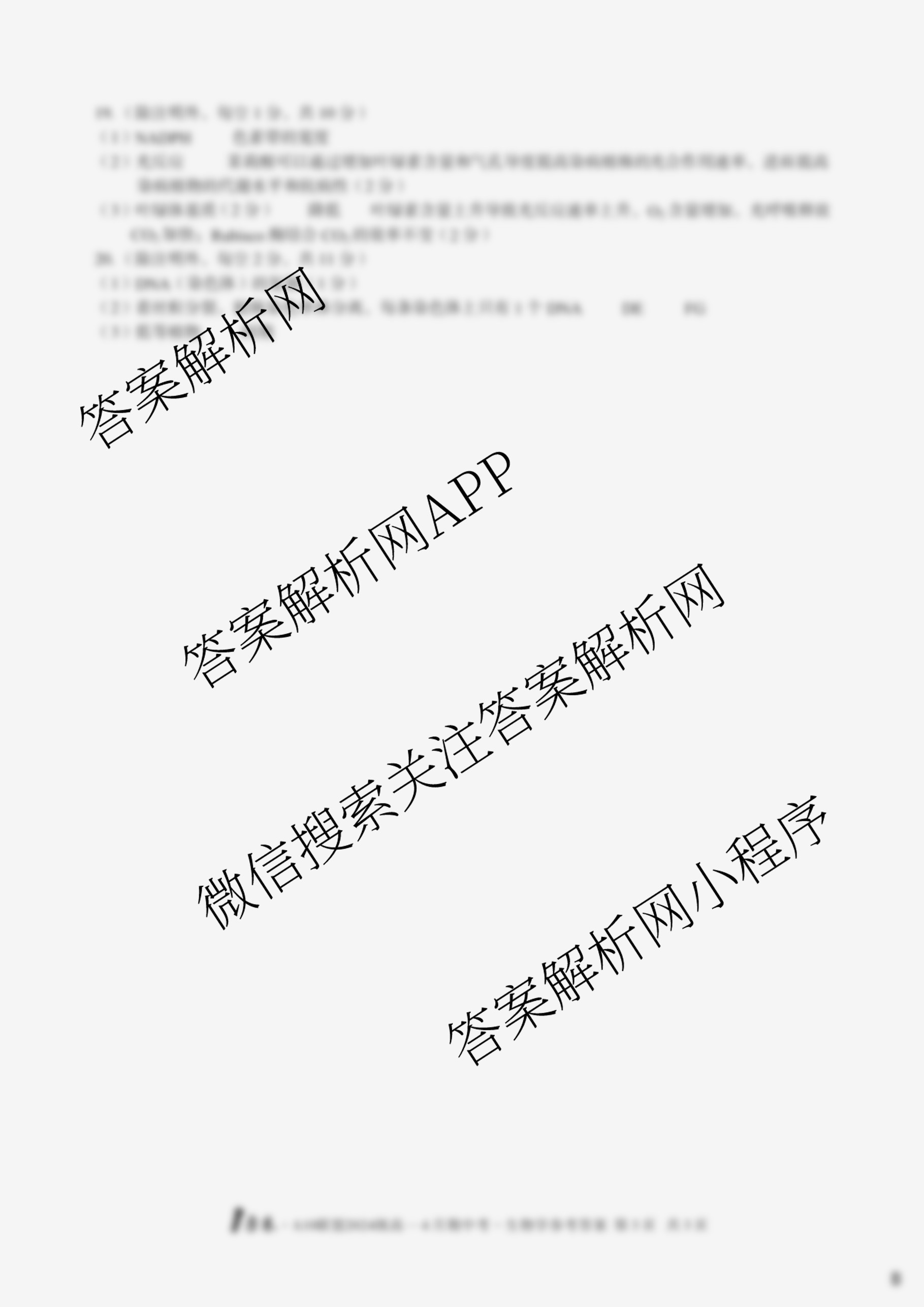 - (高一)[1号卷]·A10联盟2024级下学期4月期中考试生物答案