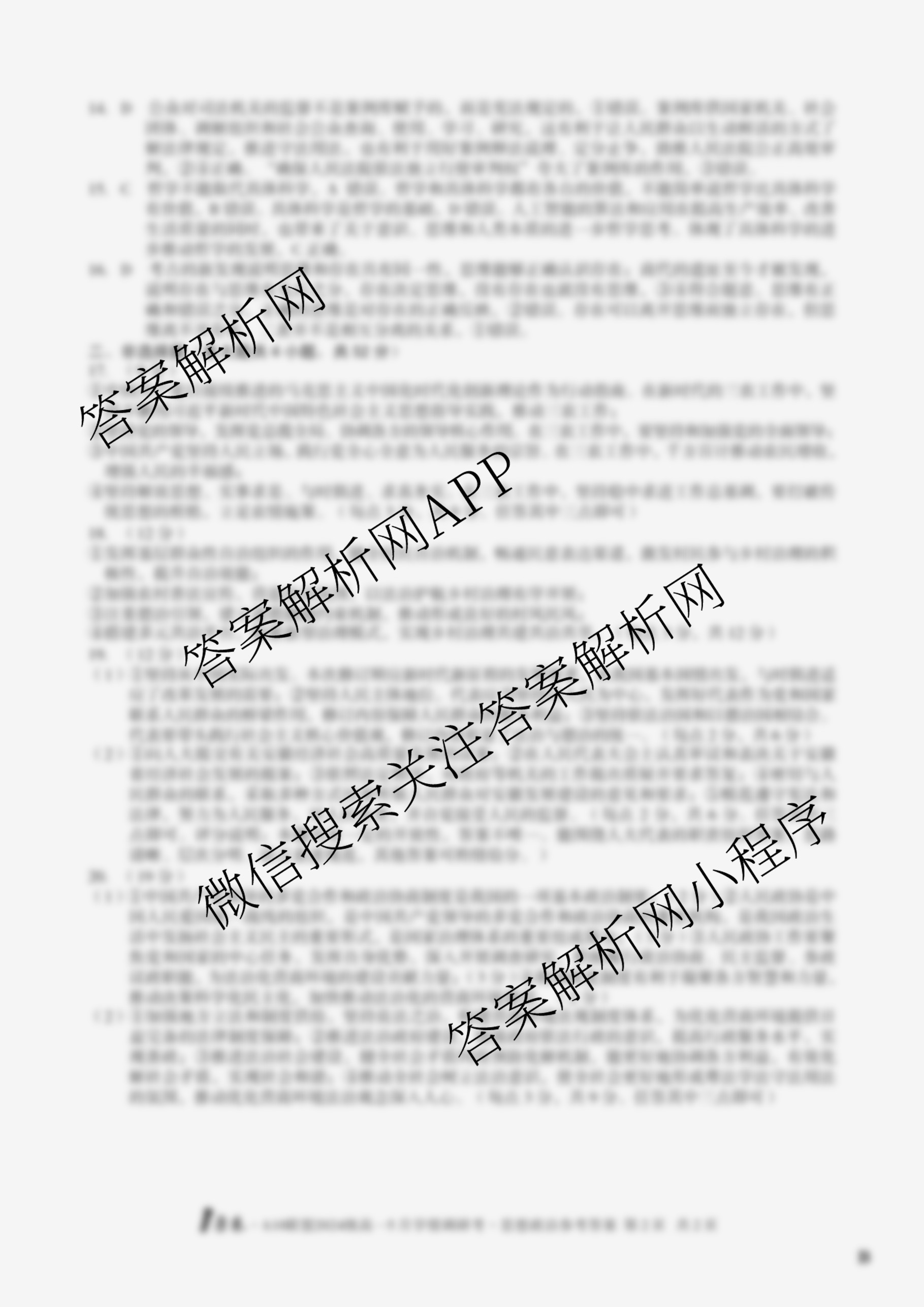 - [高一]1号卷A10联盟2024级下学期5月学情调研考考试政治(B)答案