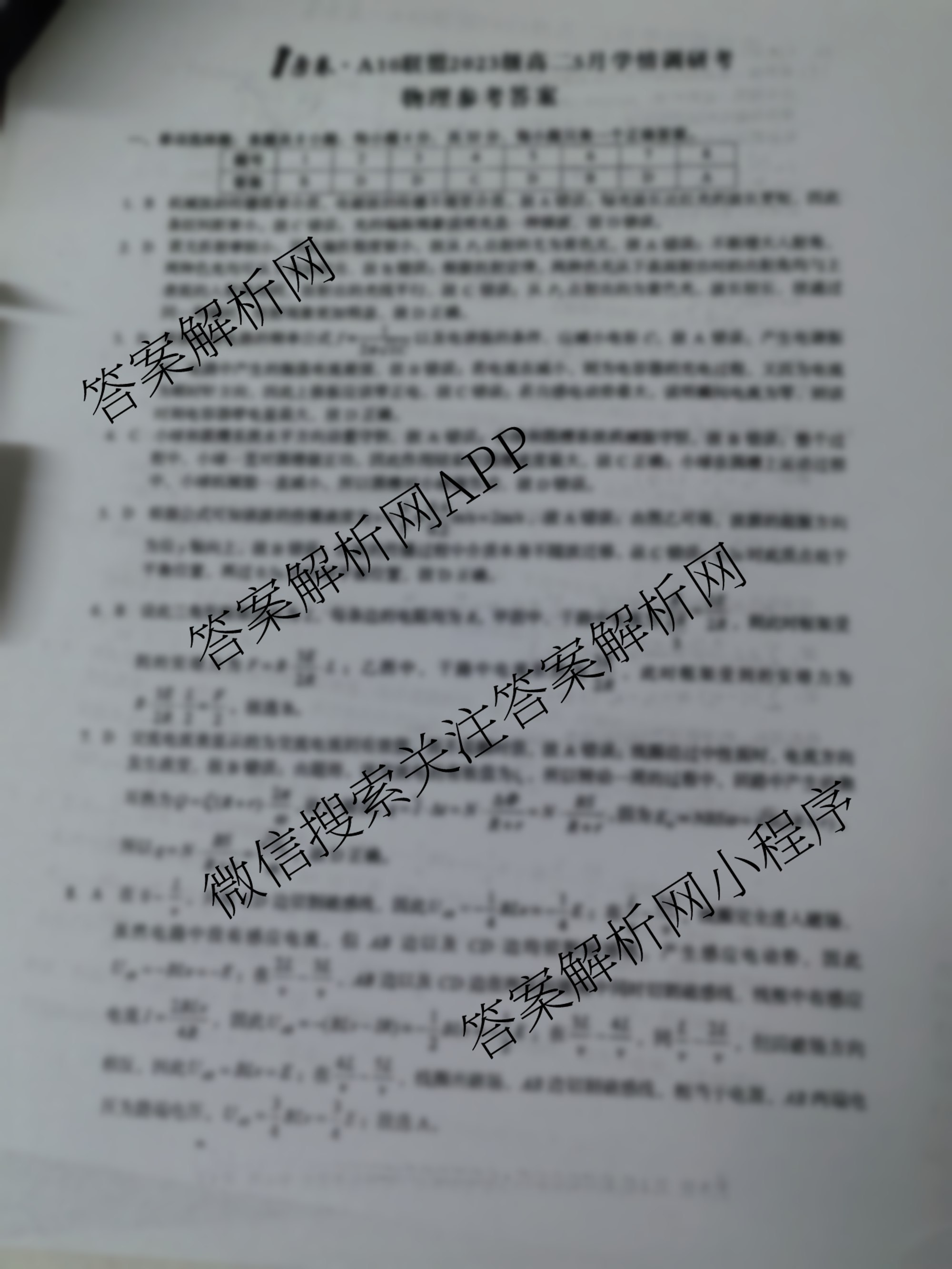 - (高二)1号卷A10联盟2023级5月学情调研考物理(B)答案