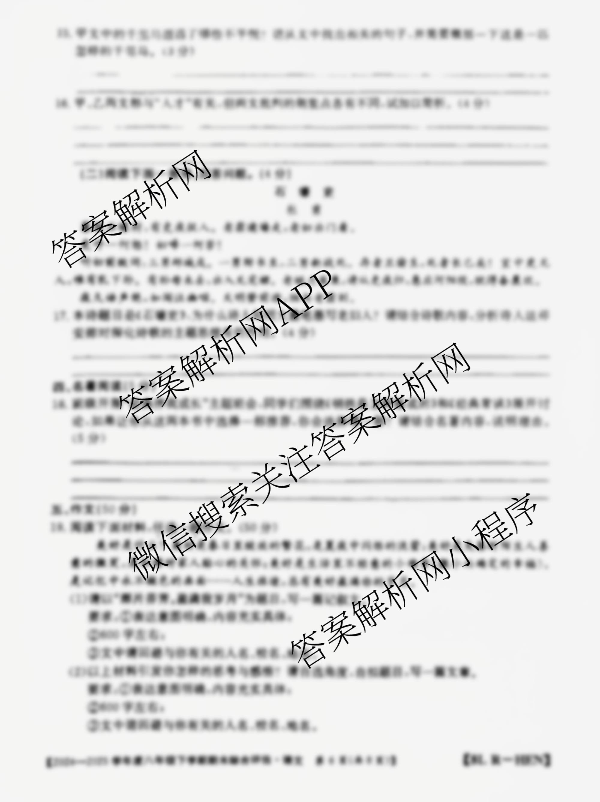 - 2024-2025[八年级]河南省学年度下学期期末综合评估[8L-HEN]语文(R)答案