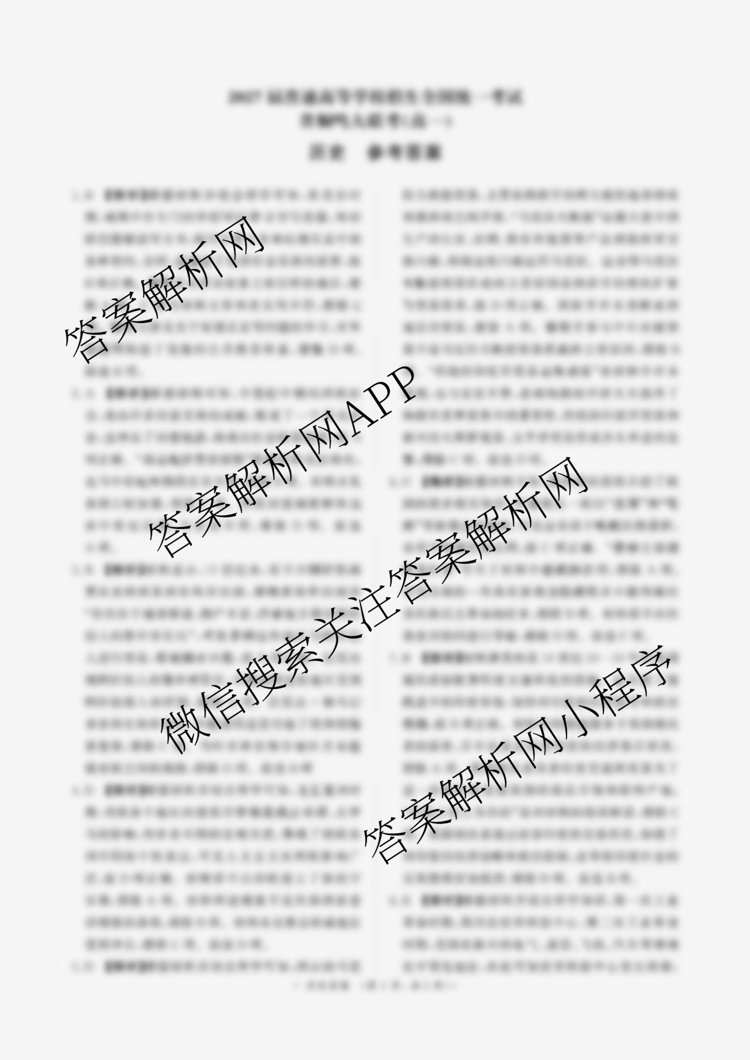 - 2027届普通高等学校招生全国统一考试·青桐鸣大联考((高一))(6.17-6.18)历史答案
