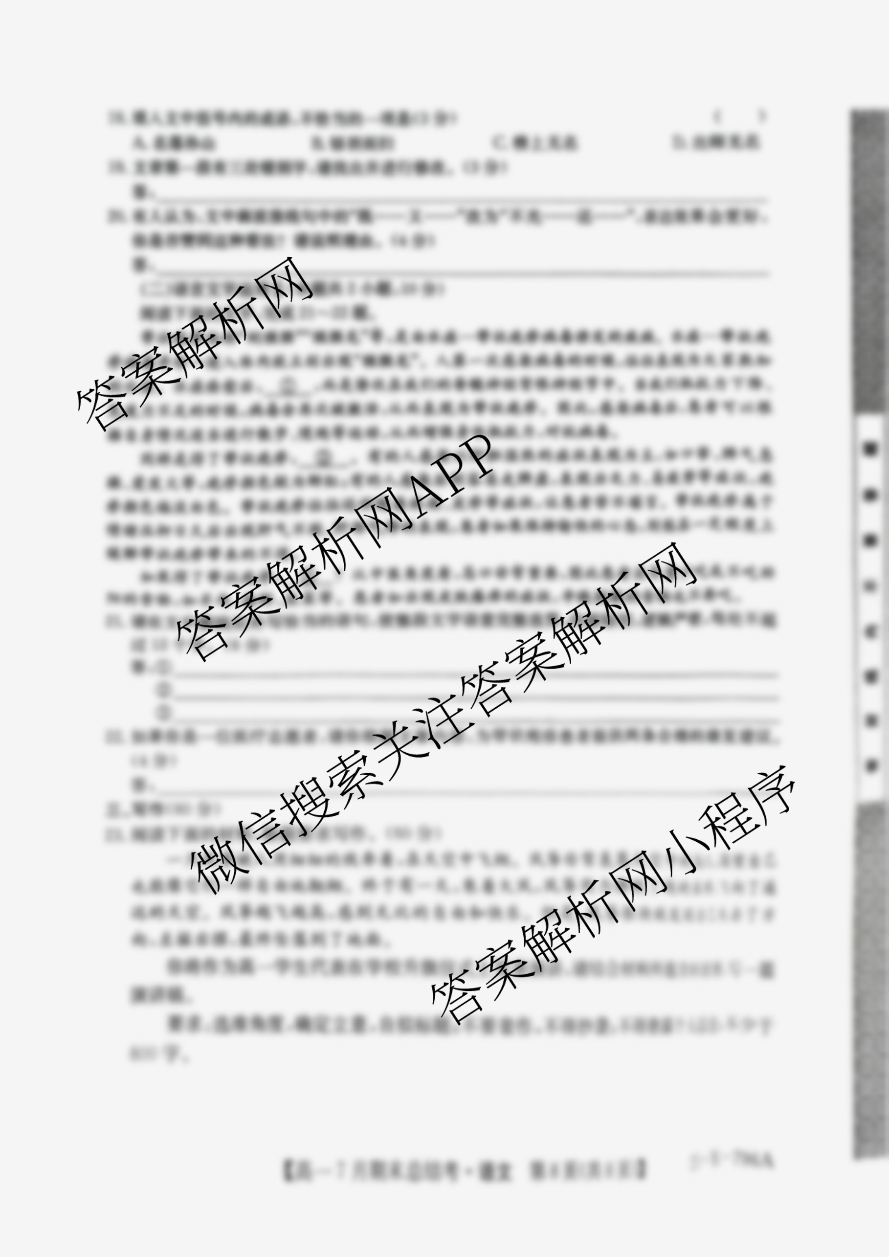 - 2024~2025[高一]三晋卓越联盟·山西省学年第二学期7月期末总结考(25-X-796A)语文试题