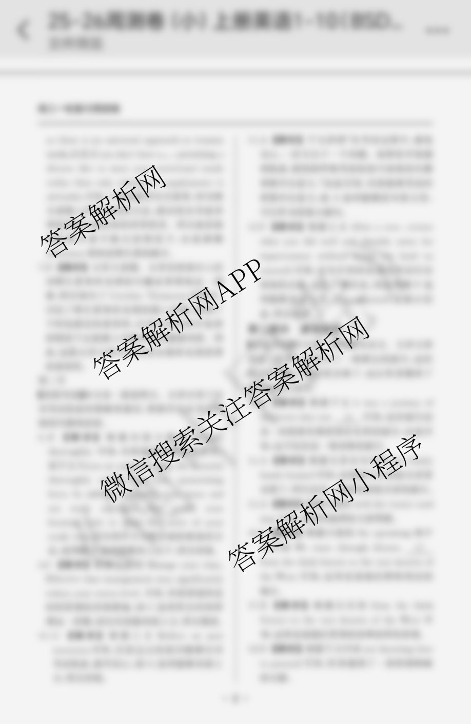 衡中同卷2025-2026学年度高三一轮复习周测卷(一)1语文(小题量)答案