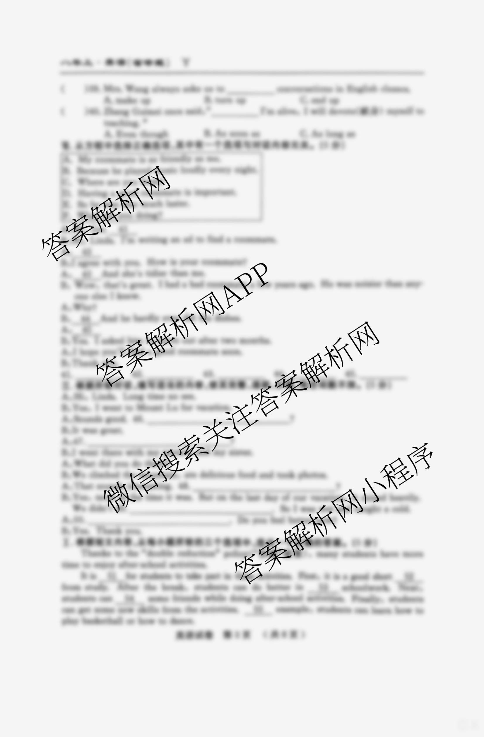 吉林省名校调研系列卷·八年级第一次月考试卷(Y)英语(人教版)试题,目前小牛顿答案网已经汇总了吉林省名校调研系列卷·八年级第一次月考试卷(Y)英语(人教版)试题的各科答案和试卷,获取更多吉林省名校调研系列卷答案解析,请在关注本站。