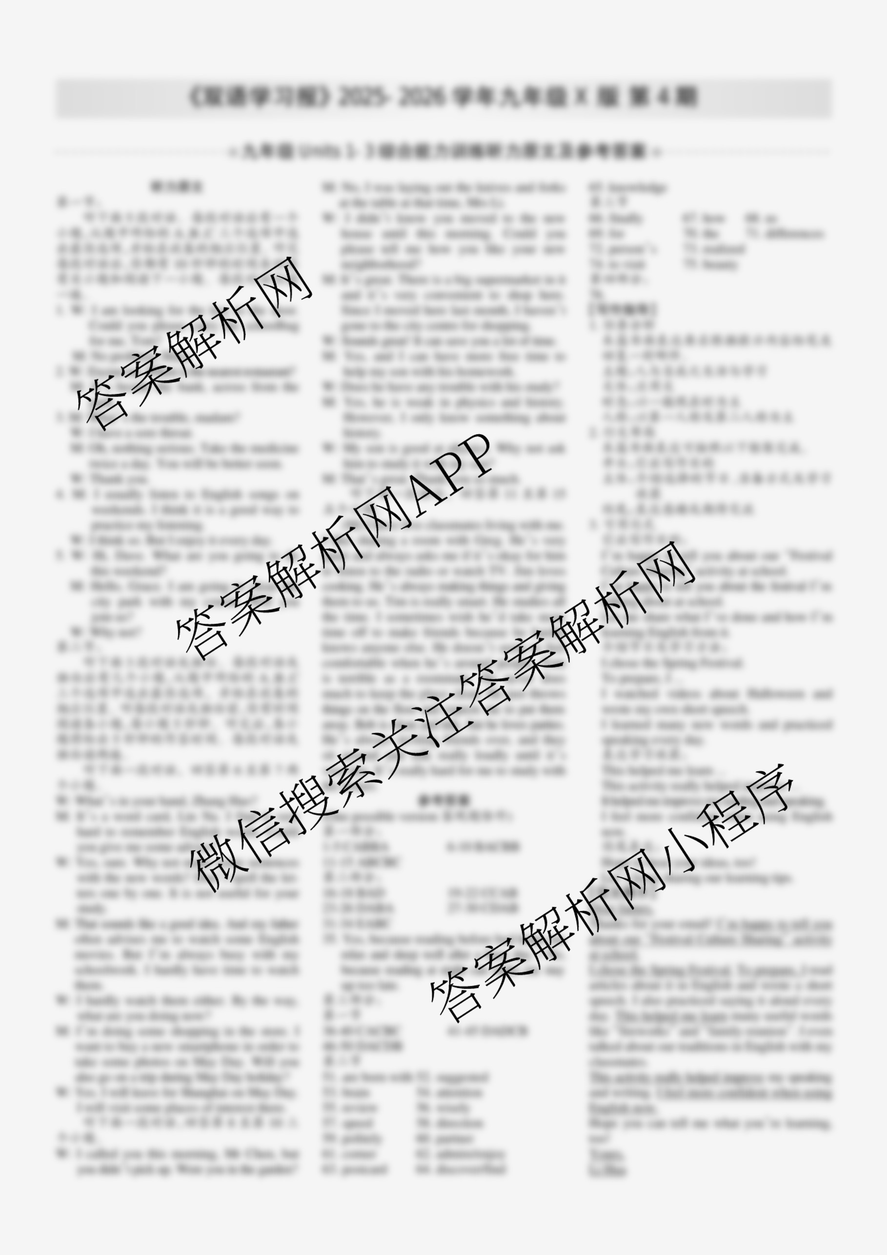 2025-2026 双语学习报 九年级 X版第4期答案