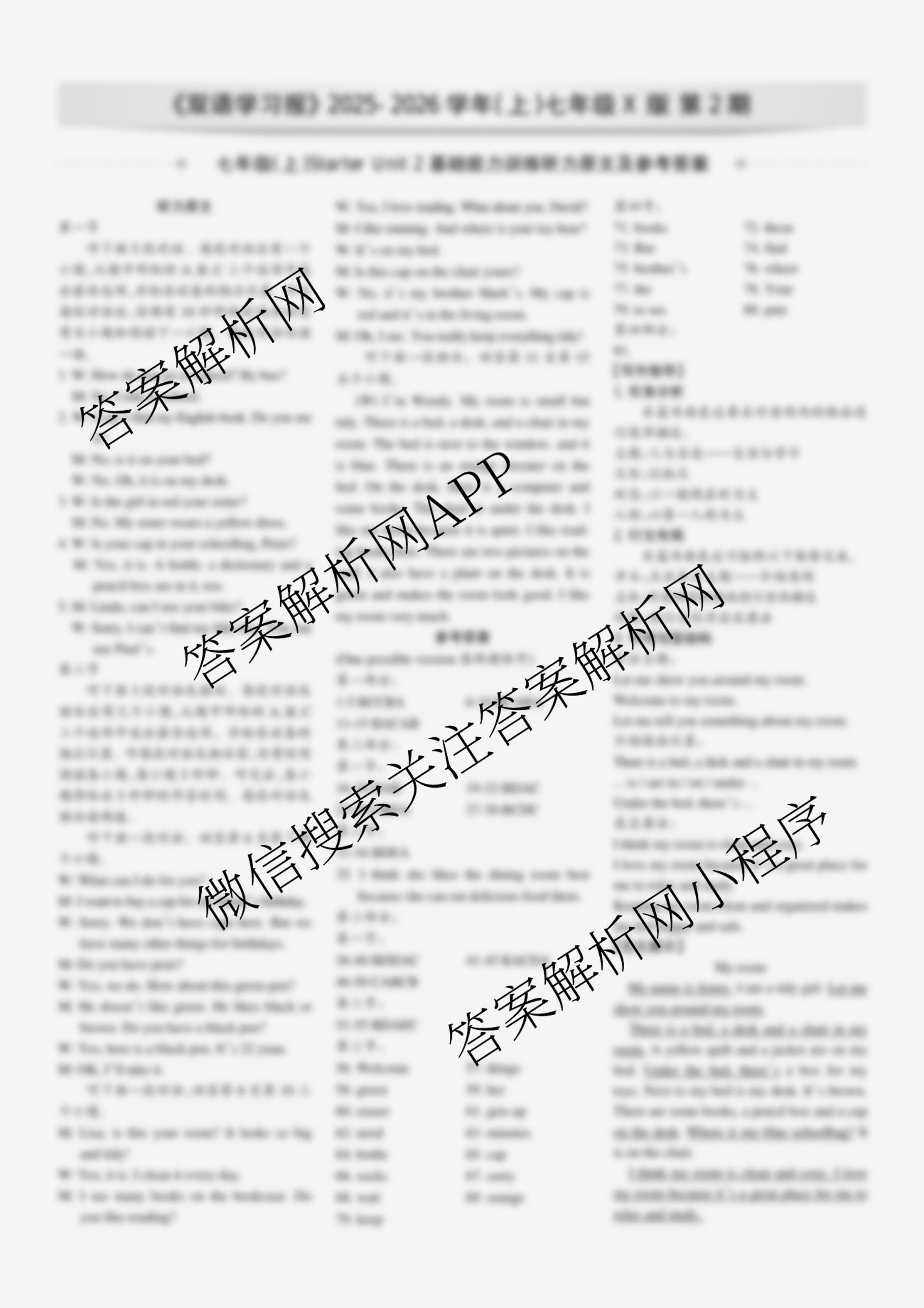2025-2026 双语学习报 七年级 X版第2期答案