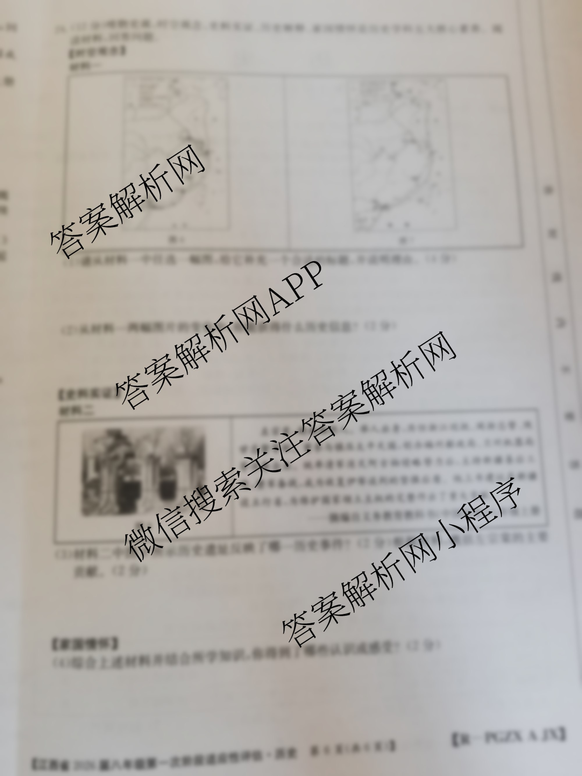 - [八年级]江西省2026届第一次阶段适应性评估[PGZX A JX]历史答案