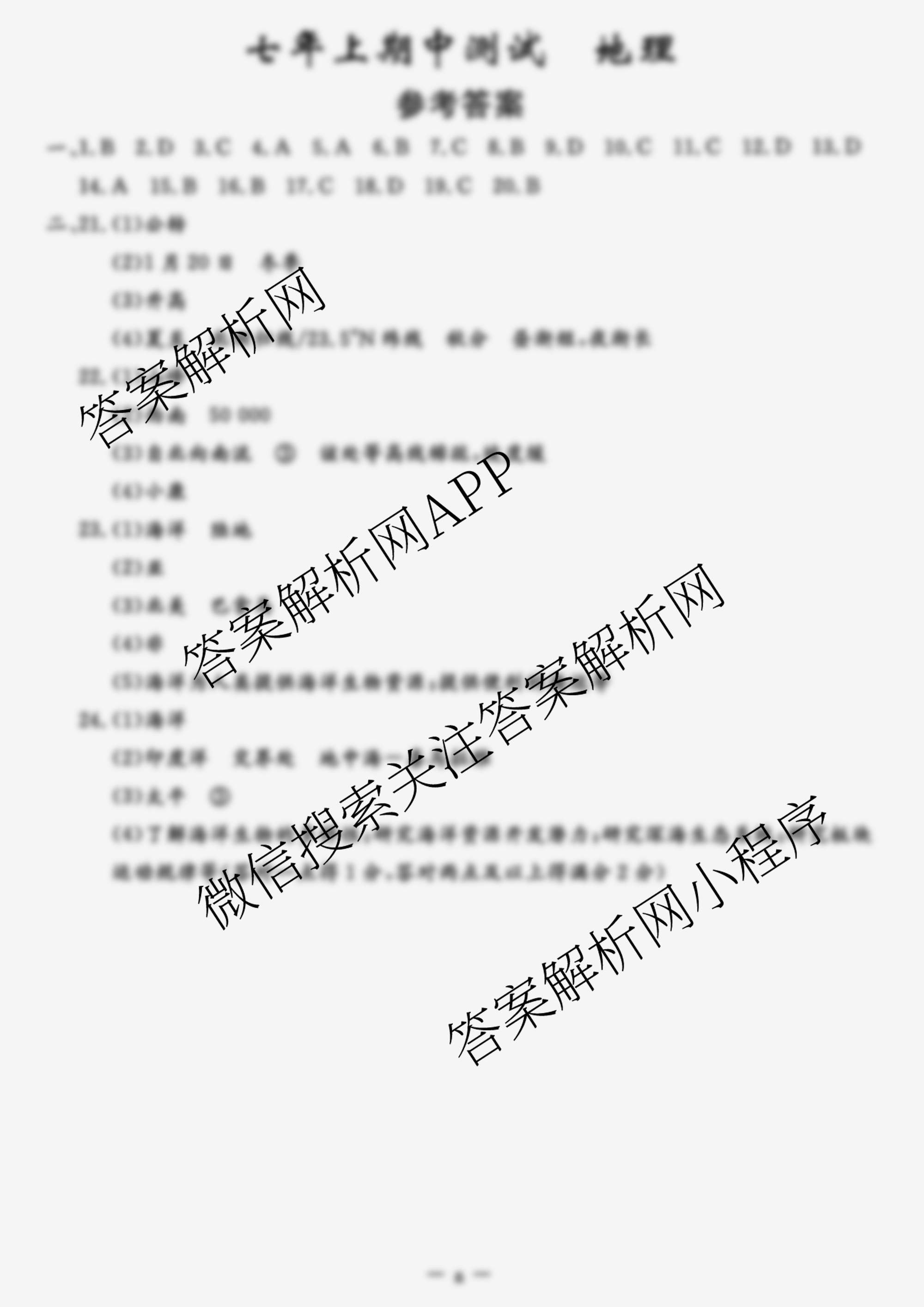 - 2025~2026[七年级](吉林省名校调研系列卷)·上期中测试卷(a)地理答案