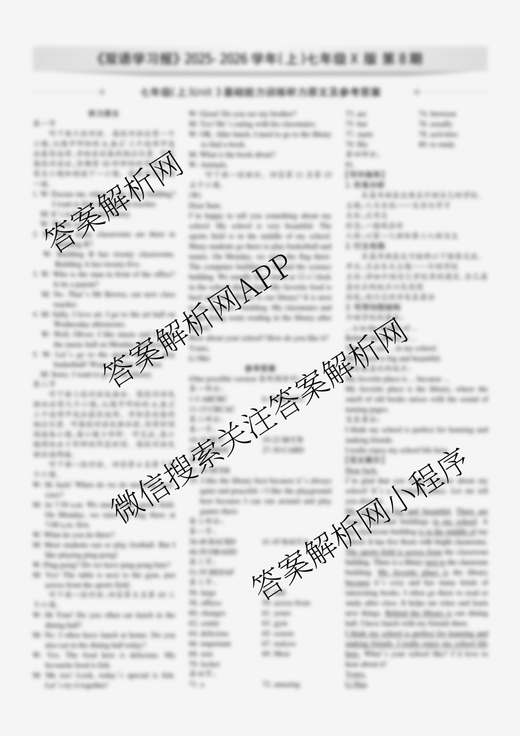 2025-2026 双语学习报 七年级 X版第8期答案