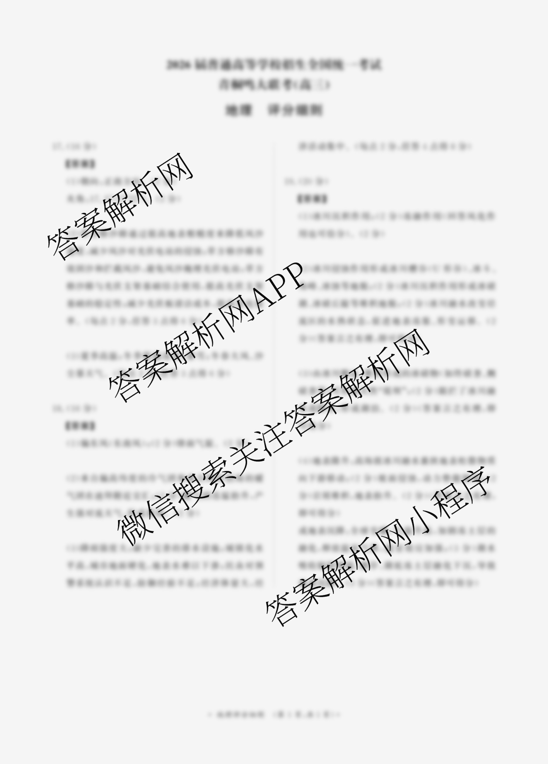 - 2026届青桐鸣·普通高等学校招生全国统一考试·青桐鸣大联考([高三])(11.13)地理答案