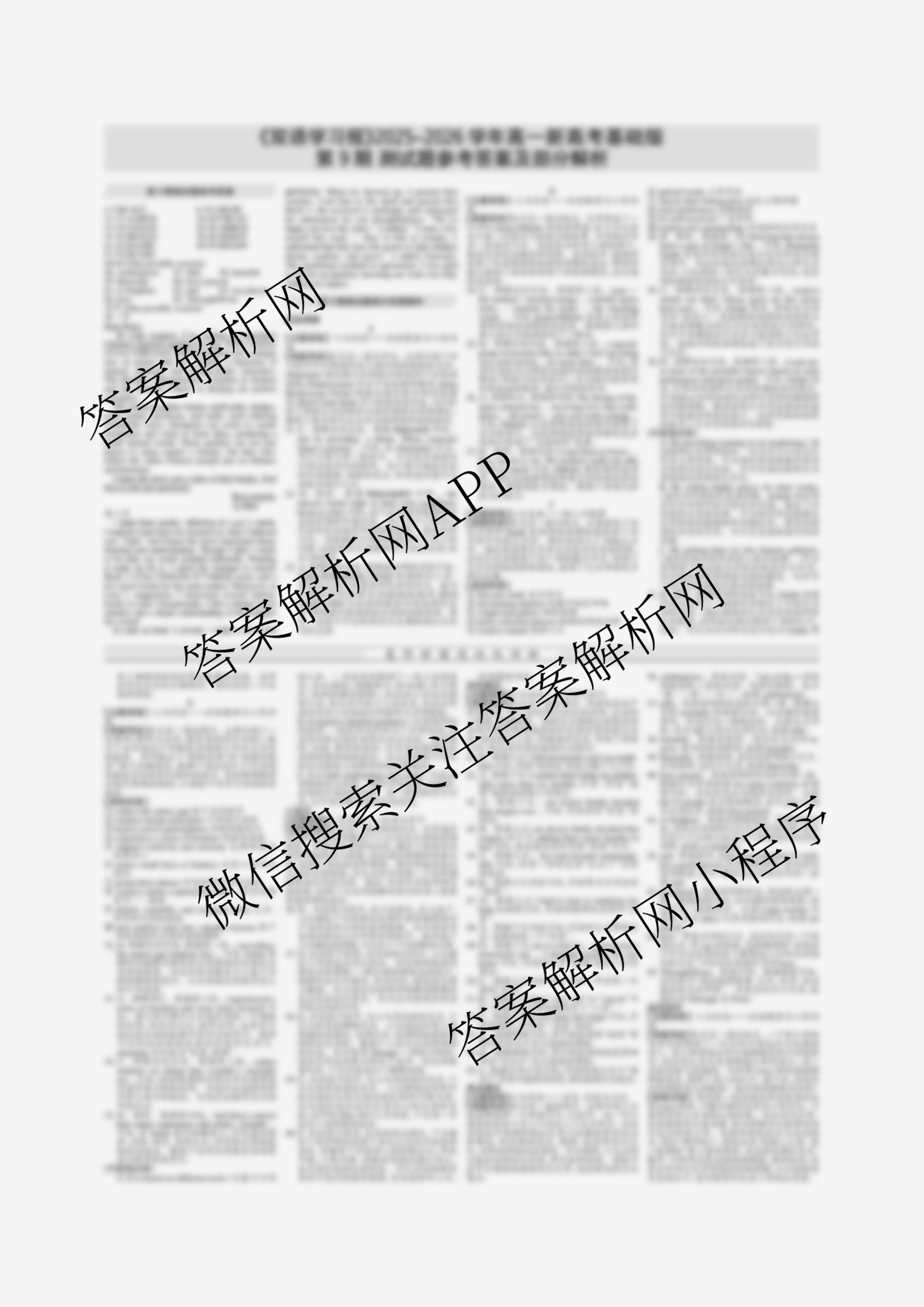 2025-2026 双语学习报 高一 RX版新高考基础版第9期答案